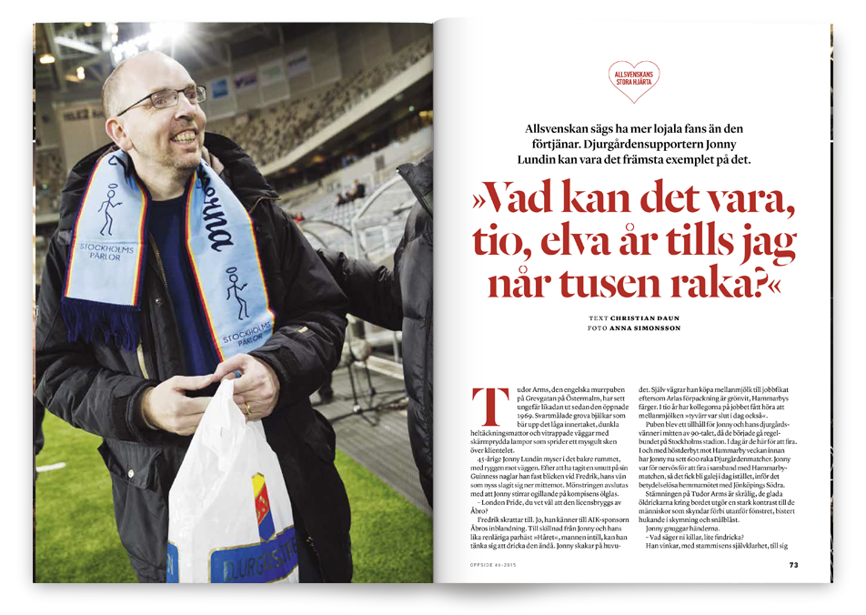 – De visar en sådan fin förståelse för mitt supporterskap här, säger Jonny. Det ger jag inte upp i första taget. Kontinuitet är viktigt när man anpassar livet efter Djurgårdens spelschema.